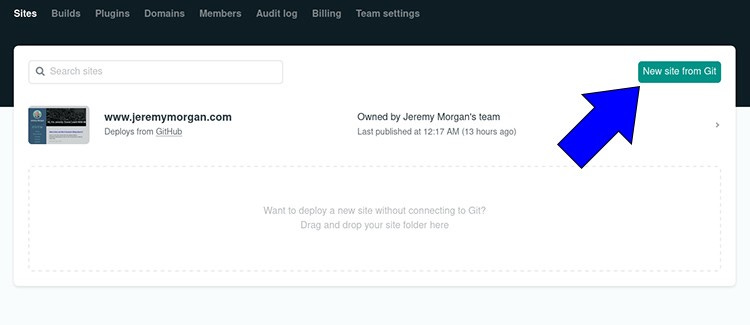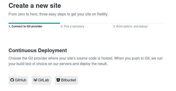 git push --set-upstream origin masterNow we’ll go to Netlify. You can create an account for free if you don’t have one.