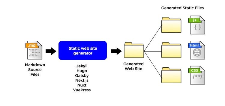 After you are finished, you run the files through a static site generator. It generates all your HTML, CSS, and JavaScript. You then host these on any static file web server (preferably a CDN).